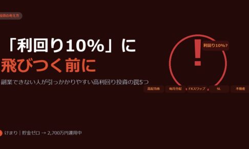 「利回り10%」に見えて実は元本を削っている——副業できない公務員・保育士が陥りやすい高利回り投資の罠を5つ解説。貯金ゼロから2,700万円を築いた著者が、数字と実例で危険な商品の正体を語ります。